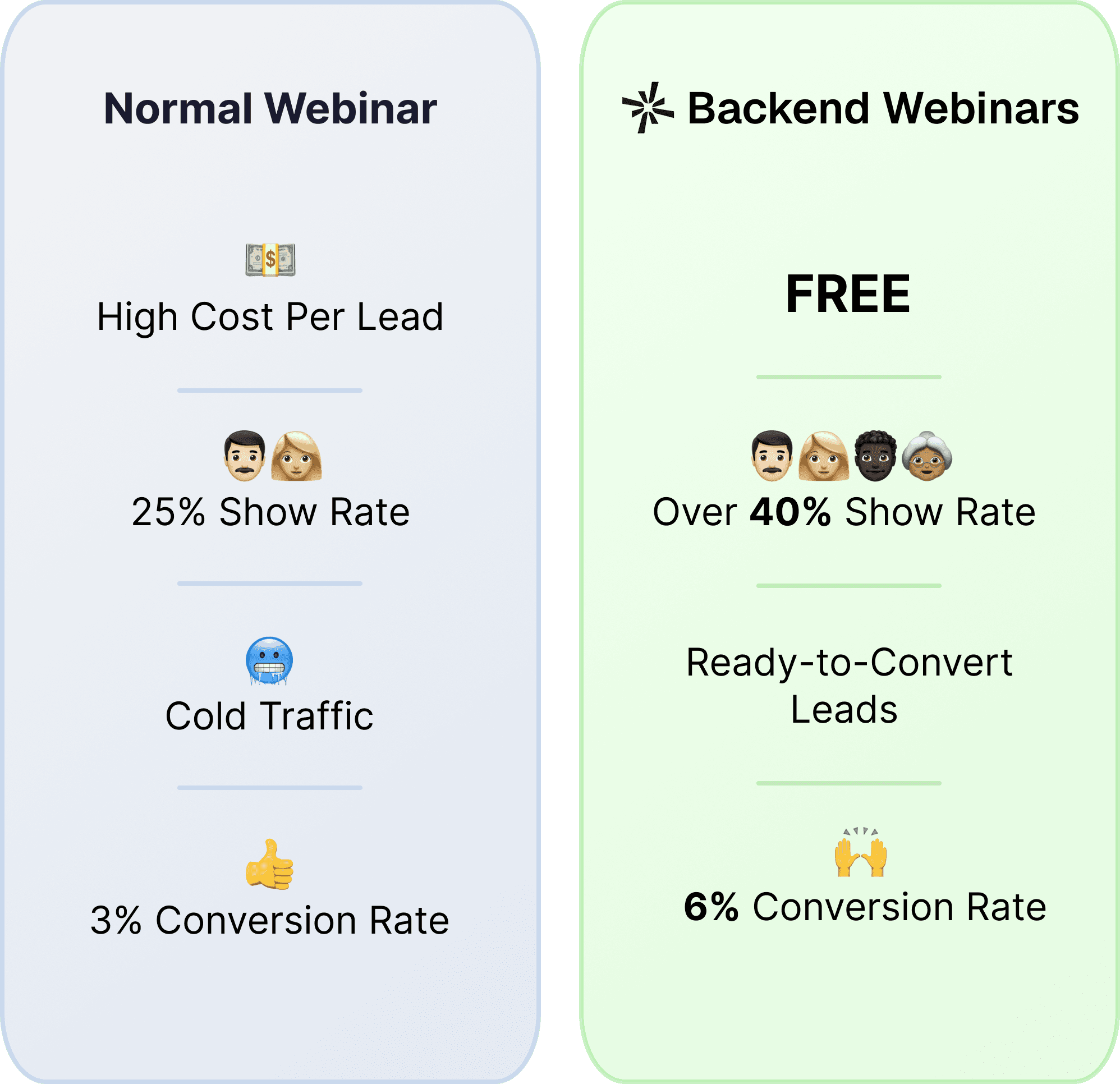 We turn those leads into cash using "Backend Webinars" that re-engage, nurture, and convert the leads already sitting in your pipeline.